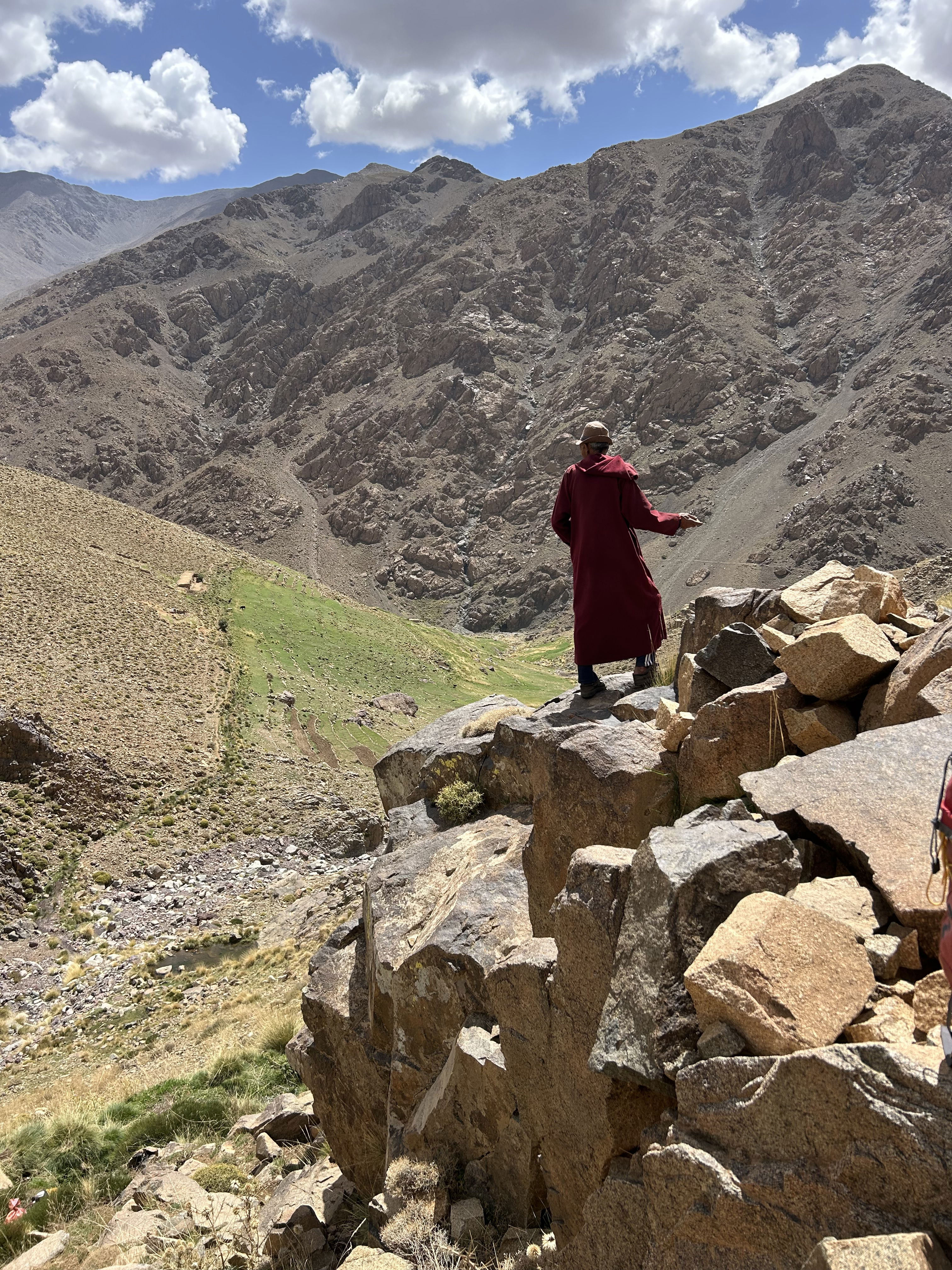 The whole experience was absolutely incredible; the organisation and logistics of the trip was superb throughout, our Guide, Said, was fantastic - such an interesting man but more than that, he was supportive, encouraging, reassuring and thorough. He had put together a brilliant team who were so hard working, smiley, friendly and just lovely, and Mohammed the cook - what a guy! He knocked up the most delicious and beautifully presented food every meal in basic conditions, whether it was half way up a mountainside or in a field or a tent. Not only that, he followed the same trails as us, usually overtaking us a couple of hours after we left camp and running (yes, literally) to the next spot to reappear with a smile and more gorgeous food.