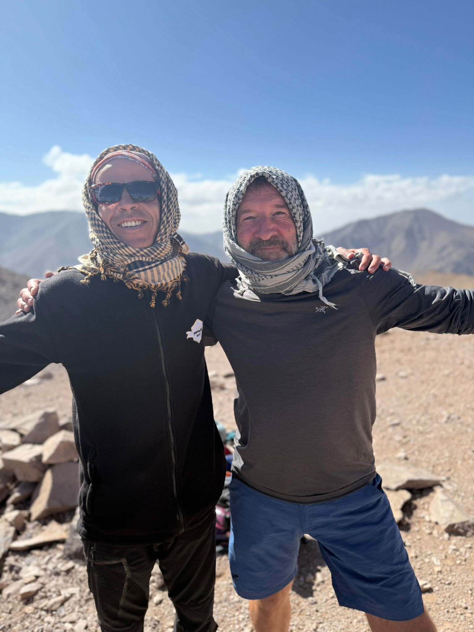 It wasn't easy, but it wasn't meant to be, Said taught me a lot - when I felt overwhelmed by the task ahead, he showed me just one step at a time and both Alex (my husband) and I were lucky enough to summit Toubkal on the Thursday morning, something that we didn't think would happen when the alarm went off at 4am to the sound of thunder and torrential rain. There was a weather window at 5.30am and four of us set off with our head torches, getting to the summit in about 3.45hrs - and boy was it worth it, once the tears had cleared the views were fabulous and so was the sense of achievement.